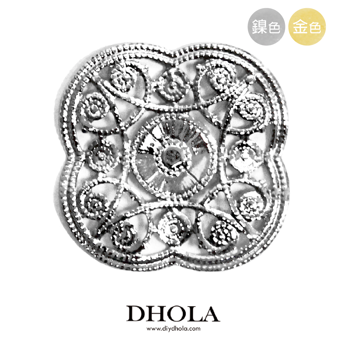 22*22MM【立體四片雙線雕花】銅片